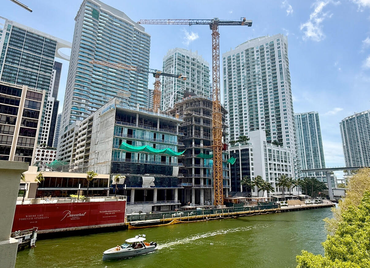 La espectacular torre de lujo ya se encuentra por el piso 12 y esta prácticamente toda vendida, aun faltan 63 pisos. Detrás, podemos apreciar a Viceroy Brickell ya sin grúas y de entrega el año que viene…Actualizado el 05/08/2025